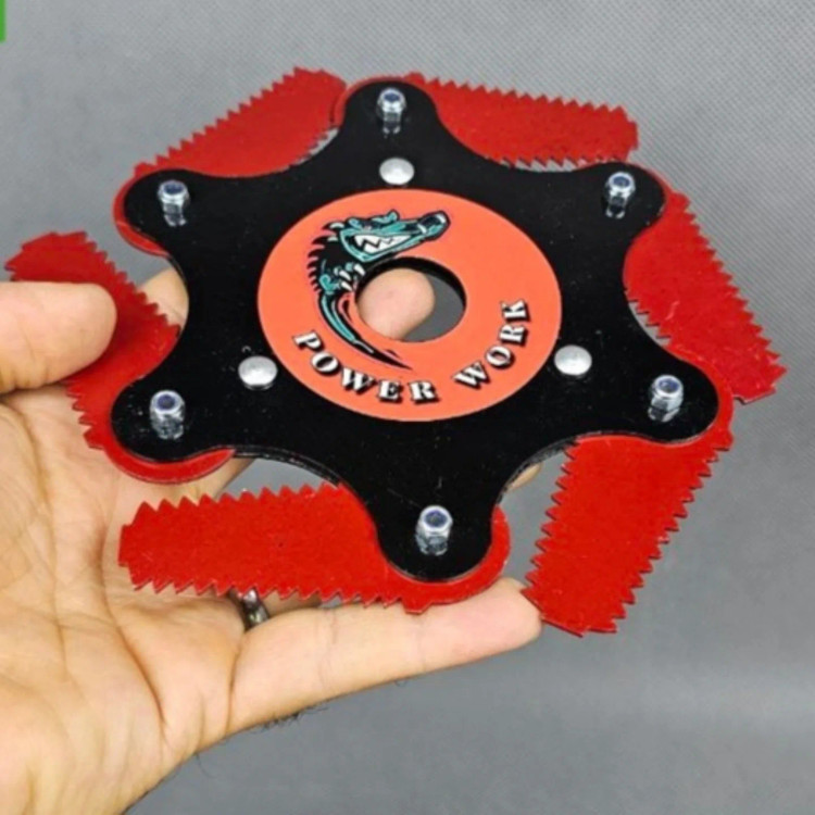 در اولین نگاه به تیغه ۶ پر پاور ورک شما با شش تیغه ارهای مواجه میشوید. این تیغهها بسیار با کیفیت هستند و در برابر سنگ و شیء سخت مقاوم میباشند به همین خاطر طول عمر بالایی دارند. تیغهها با ایتفاده از پیچ و مهره به صفحه مرکزی وصل شدهاند که در مواقع ضروری بتوانید آن را تعویض کنید. به دلیل مقاومت بالا این تیغهها مناسب باغات و زمینهای کشاورزی هستند که سنگلاخ دارند.