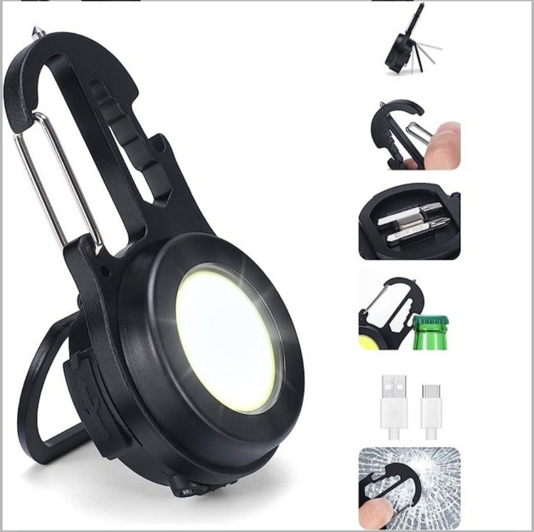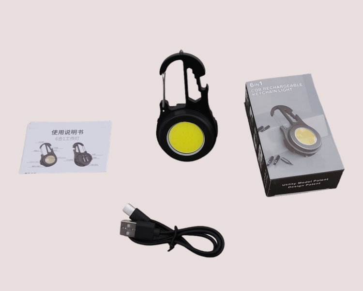🟣نور افکن چراغ قوه قلاب دار COB 6IN1 چندکاره جیبی مسافرتی